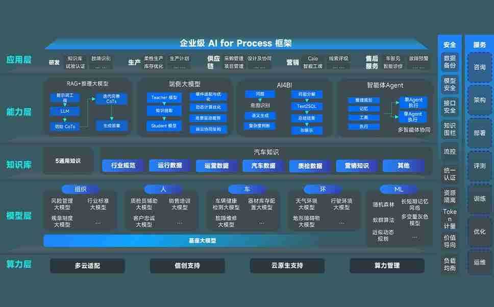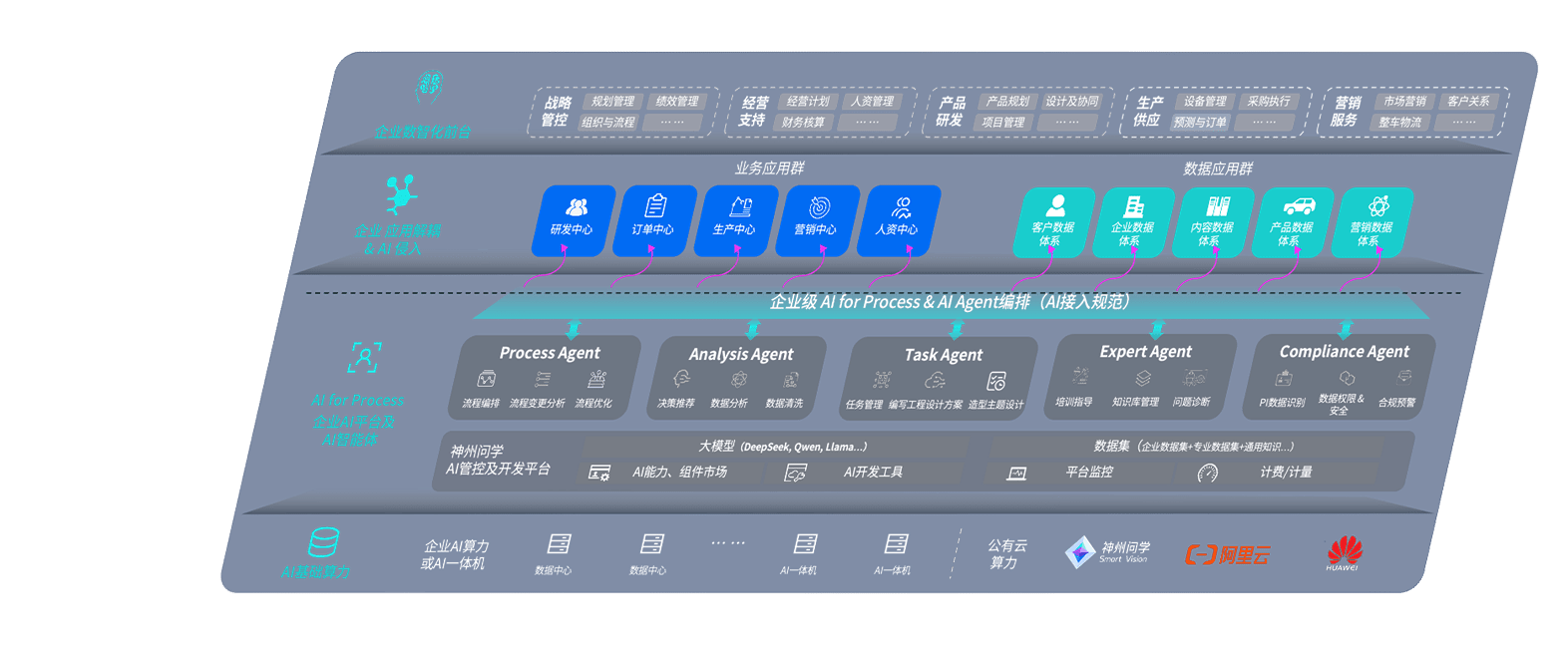 端到端的一站式AI工作空间深度融合了从企业战略规划到日常经营的全流程业务板块,,,,定向解决车企内部领域多、、、部门多、、、、链条长、、场景碎片化等难题,,,,支持车企快速构建以AI为核心的生产力写作体系,,,,实现任务执行与AI能力的无缝集成与交互